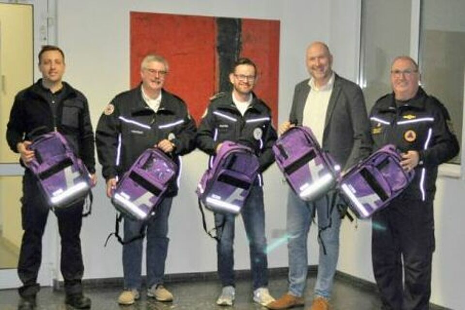 Landrat Andreas Kruppert händigte den Vertretern des PSNV neue Einsatzrucksäcke aus, die von der Kreisverwaltung zur Verfügung gestellt wurden.